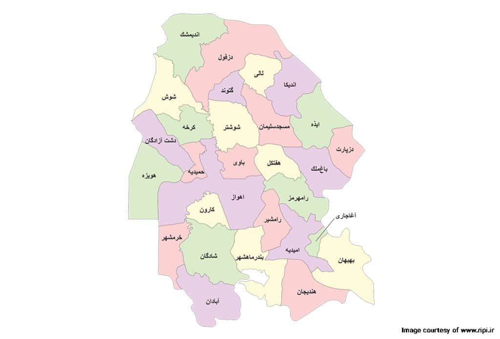 شهرهای استان خوزستان روی نقشه چندتاست؟